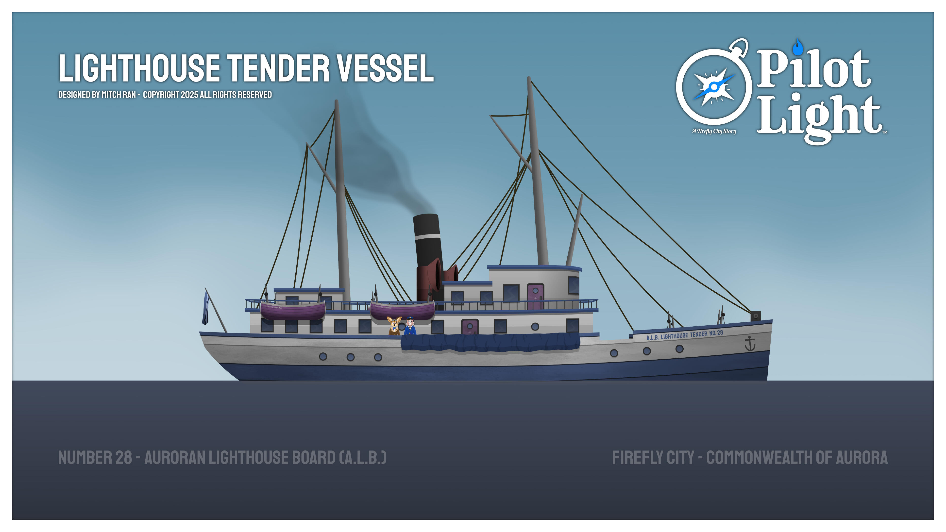 The Auroran Lighthouse Board and Auroran Department of Daily Hazards once utilized lighthouse tender vessels to transport and supply lighthouse keepers across the nation's lighthouse network. These ships were small, rather simple, but critical to early Auroran maritime operations and safety.• Administration: Auroran Lighthouse Board (A.L.B.) and Auroran Department of Daily Hazards (D.D.H.).